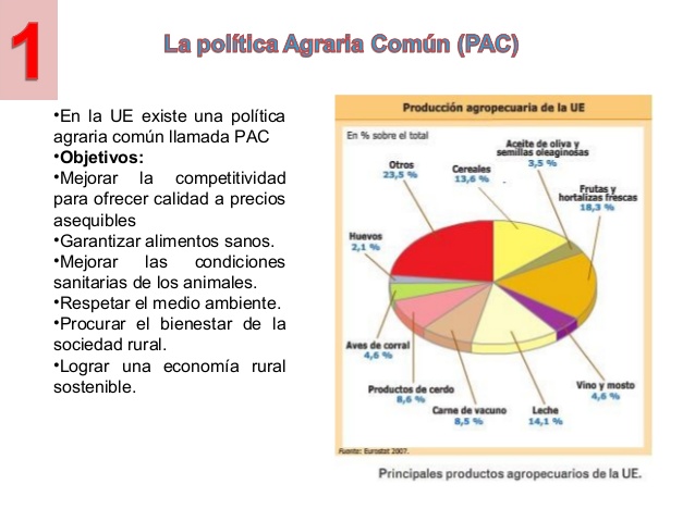 Desde 1986, con la entrada en la entrada en la U.E., la política agrícola la establece la P.A.C.